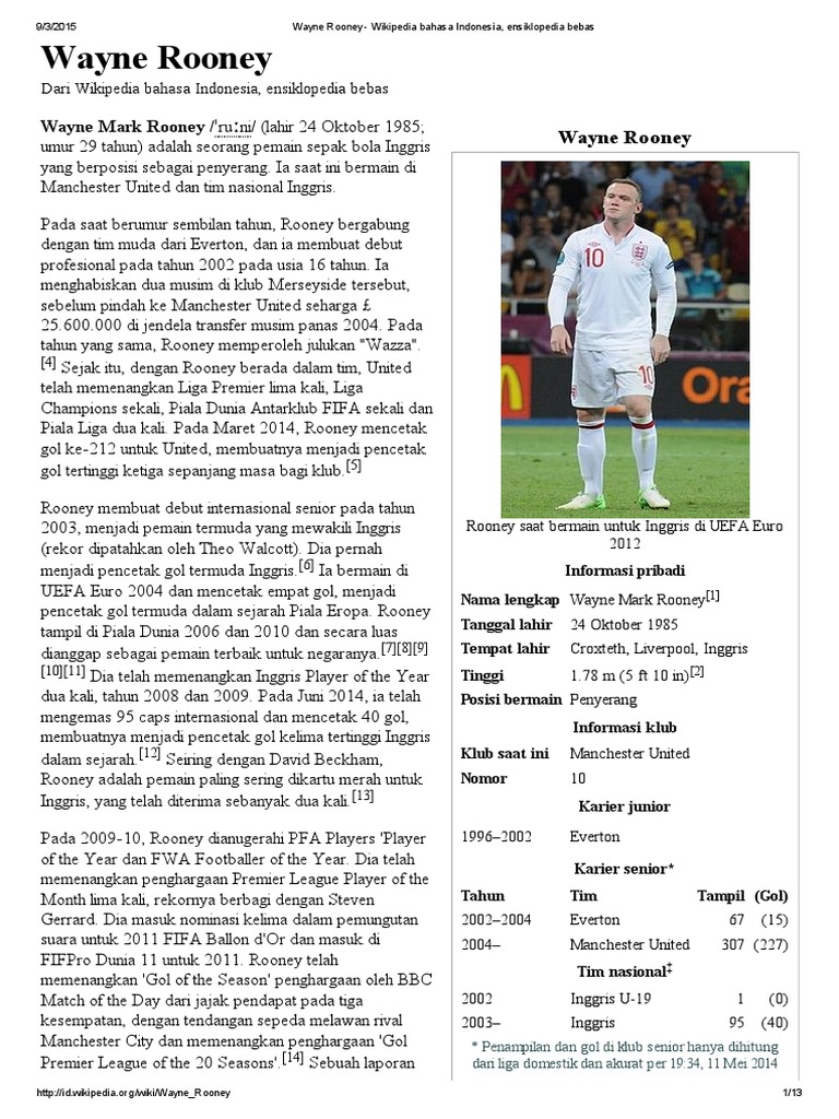Liga Inggris Kai Putra Wayne Rooney Teken Kontrak dengan Man United di Usia 11 Tahun Kai adalah putra pertama dari Wayne dan Coleen. Sebelum bermain di klub Championship itu Wayne Rooney lebih dulu bermain di DC United selama dua musim. Rooney has won the Goal of the Season award by the BBCs Match of the Day poll on three occasions with his bicycle kick against rivals Manchester City winning the Premier League Goal of the 20 Seasons award.